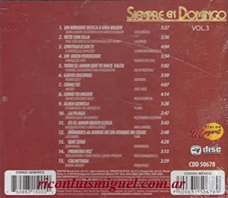 El disco "15 Exitos Originales Siempre En Domingo Vol 3" de Luis Miguel recoge los éxitos del programa de televisión